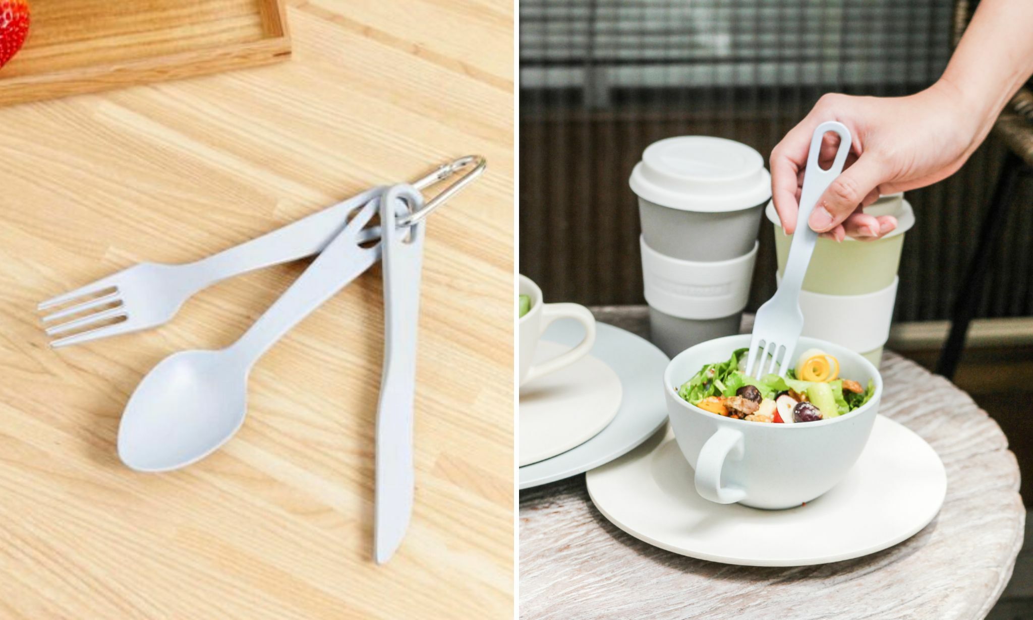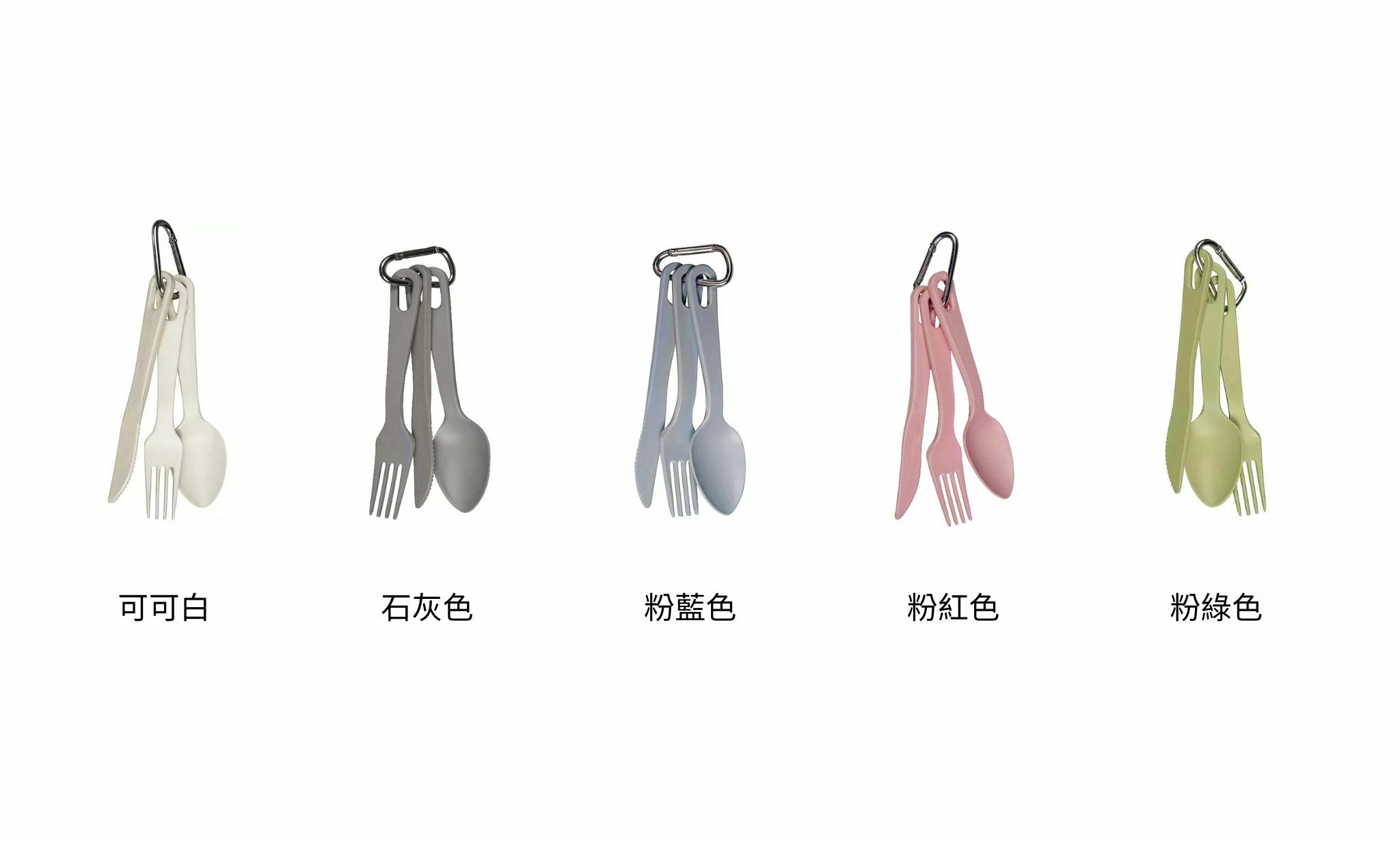 簡單做環保就從自備餐具開始!刀叉湯匙都有的三件組合,還附一組登山扣便於攜帶,在家或出外使用都很方便。